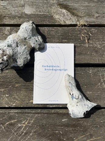 Forholdsvis hverdagsagtigt: En forholdsvis rammende titel, når det kommer til den lille bog, som jeg i mangel på bedre vil kalde en digtsamling. Hvert digt er som et venligt puf, en invitation til at relatere – som den struktur vi kender fra sociale mediers memes. Forholdsvis hverdagsagtigt inviterer læseren til funderinger over simrekogningens vendepunkt og antal kager der er passende at købe hos bageren.